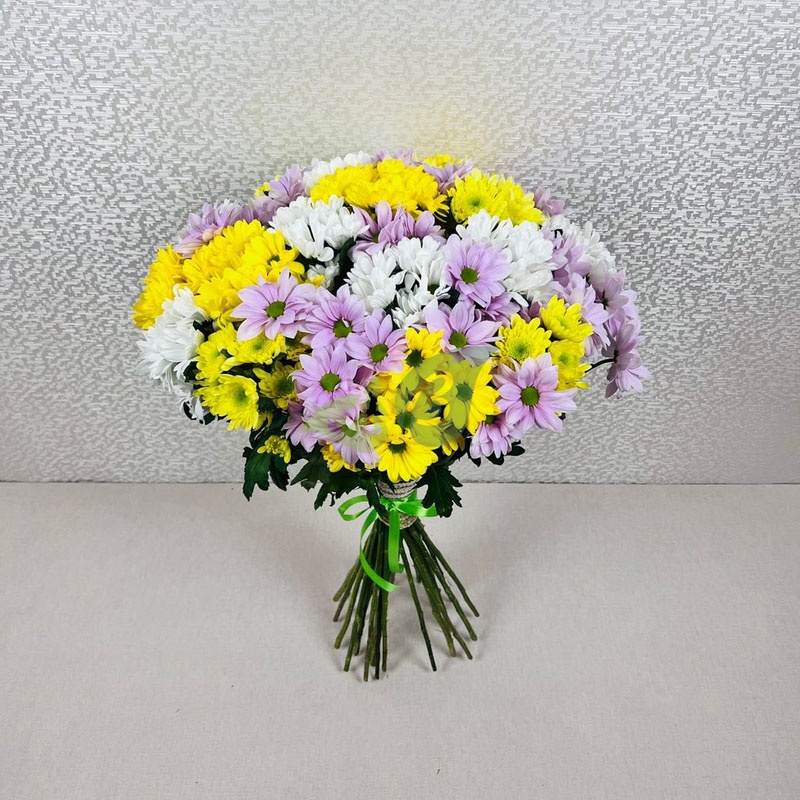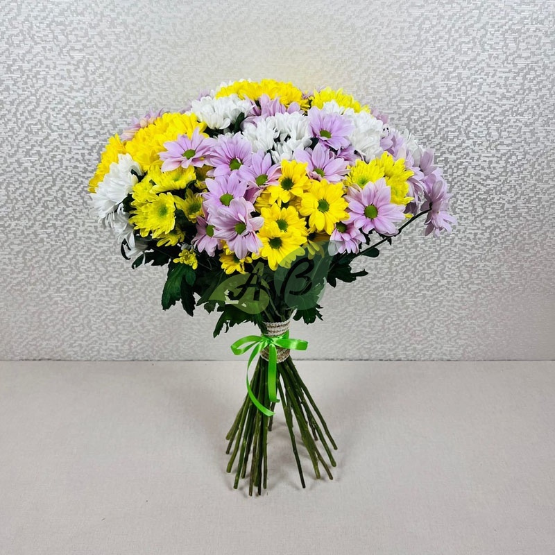 Закажите большой букет из сиреневых, белых, желтых и розовых хризантем и доставка по Абдулино будет бесплатной.