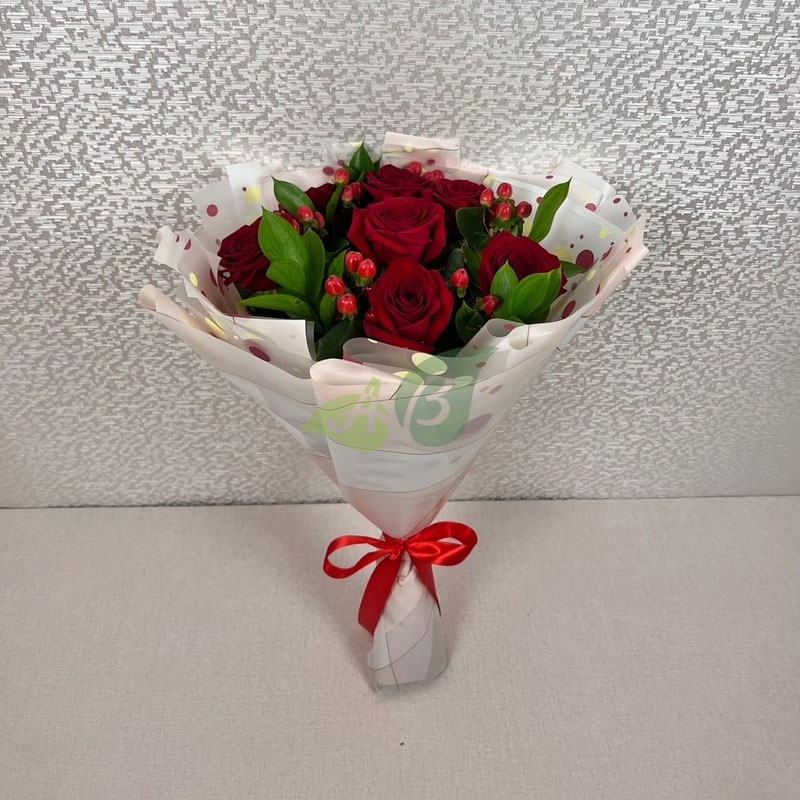 - Роза - 7 штук, цвет - красный;